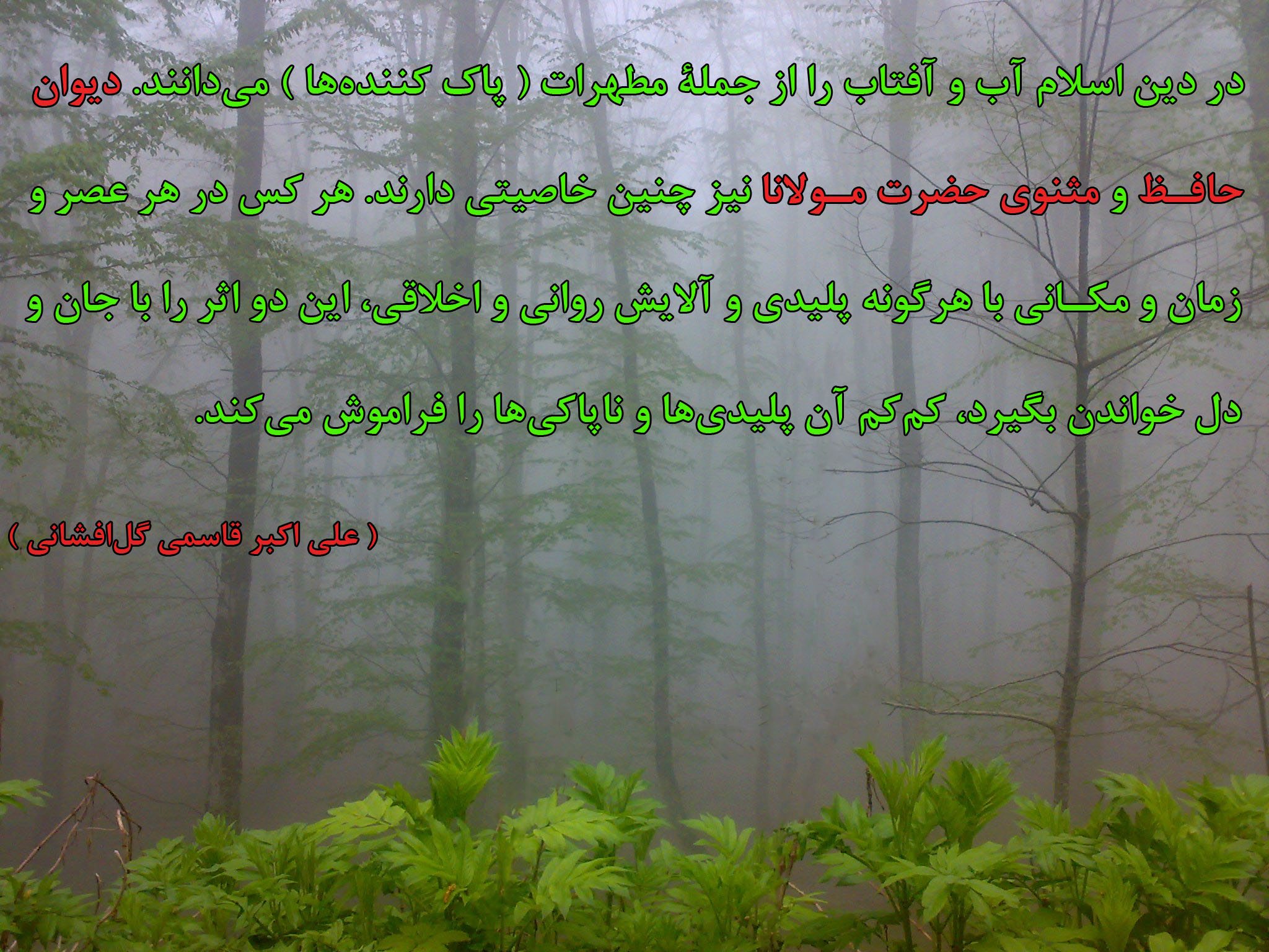 میزبان محترم سرخ و سیاه شدهبود ولی این مهمان از رو نمیرفت. من هم ساکت نشستهبودم و به مزخرفات ایشان گوش میدادم. ناگهان رو به من کرد و گفت: جناب قاسمی! شما هم مطلبی بفرمایید. گفتم: من که عرض خاصی ندارم ولی خدا بیامرزد حافظ شیرین سخن را که فرمودند: